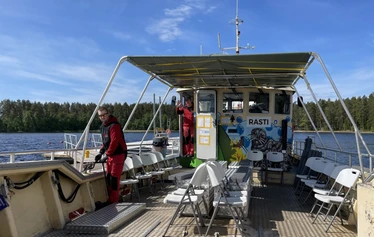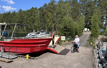 Saimaan saaristoreitin lauttaylitys reitillä myötäpäivään ajettaessa (lautan kulkusuunta lännestä itään). Lähtö Sarviniemen virkistysalueelta, osoite Suur-Saimaantie 2050, Taipalsaari.